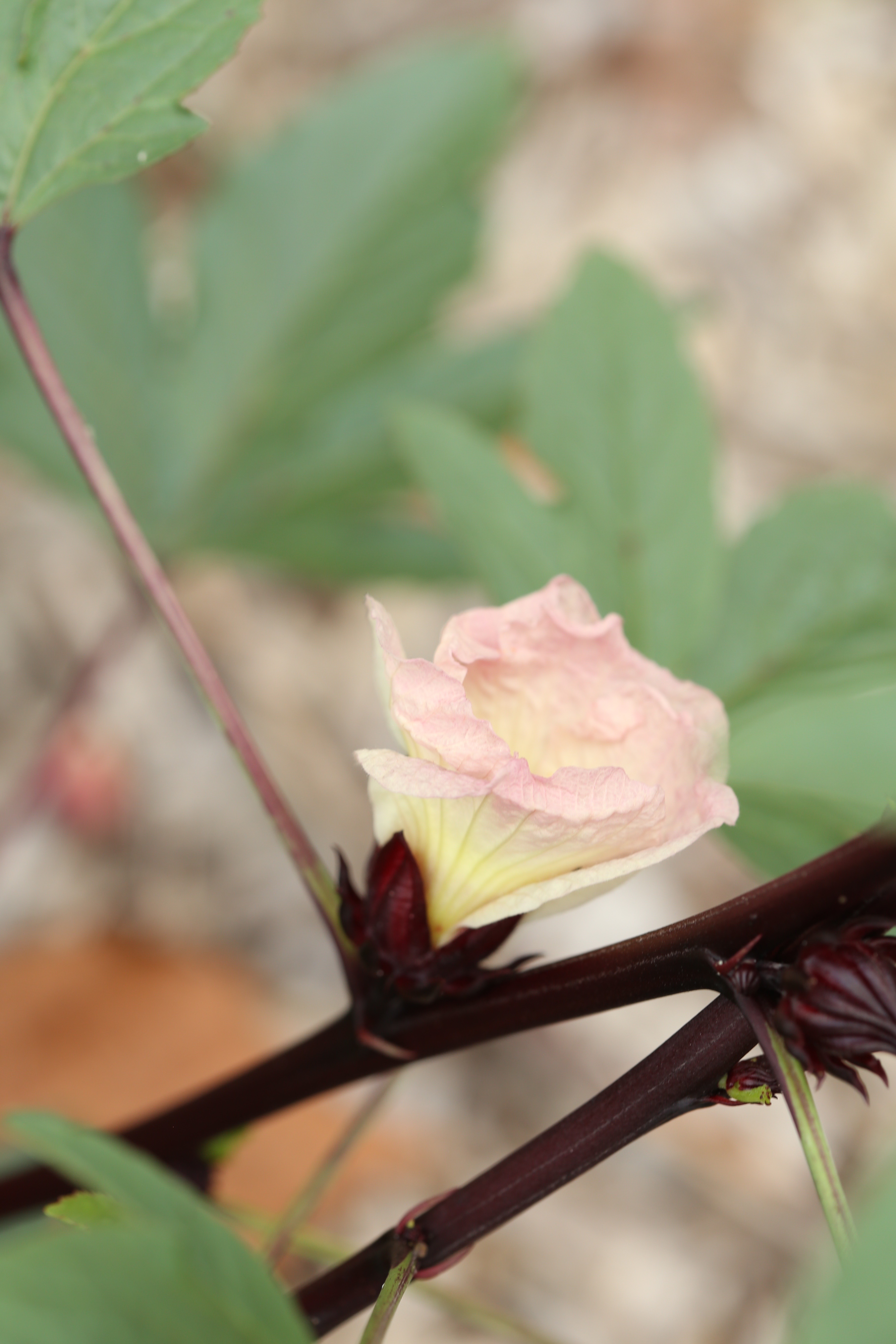 While the flower is pretty, and edible, it is a day flower which means it opens for a day and then dies. As soon as the bloom withers, the plant begins producing seeds in the calyx. To make tea, you must gather them before the pod swells with immature seeds. It takes quite a few to make a pot of tea! Because of this, I generally plant 3 or 4 of them around the garden and yard. They can get quite large if the conditions are right; lots of direct sun, plenty of moisture but not soggy.