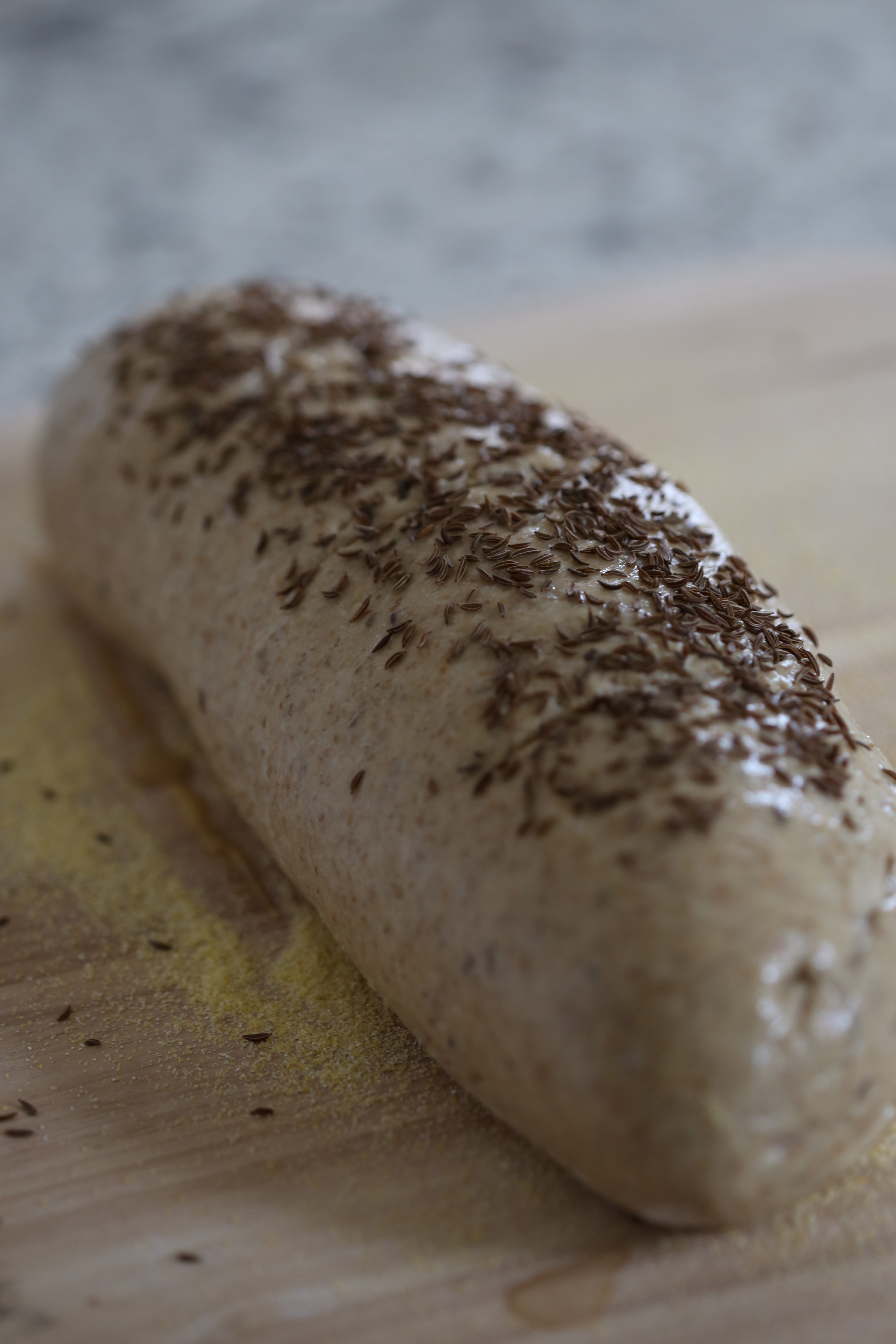 The bread is fairly easy to mix and since it is a rye bread, the ingredient list is simple. The only confusing part about it, finding the proper rye flour. Allow me to wish you well with this endeavor. Every rye bread recipe I read calls for a specific type of rye flour and not all millers produce them equally. Essentially, the amount of whole grain used in the flour is the difference and if you would like a better understanding of what each type of rye flour is, this chart from the Whole Grains Council may help you understand it all. While the chart does explain things, they also make it a point to mention, repeatedly, that not all millers produce equal products; the chart is more of a suggestion than a standard. As for my bread, I have only been able to find Hodgson Mill 100% stone ground rye flour which according to the chart makes it a dark rye flour.