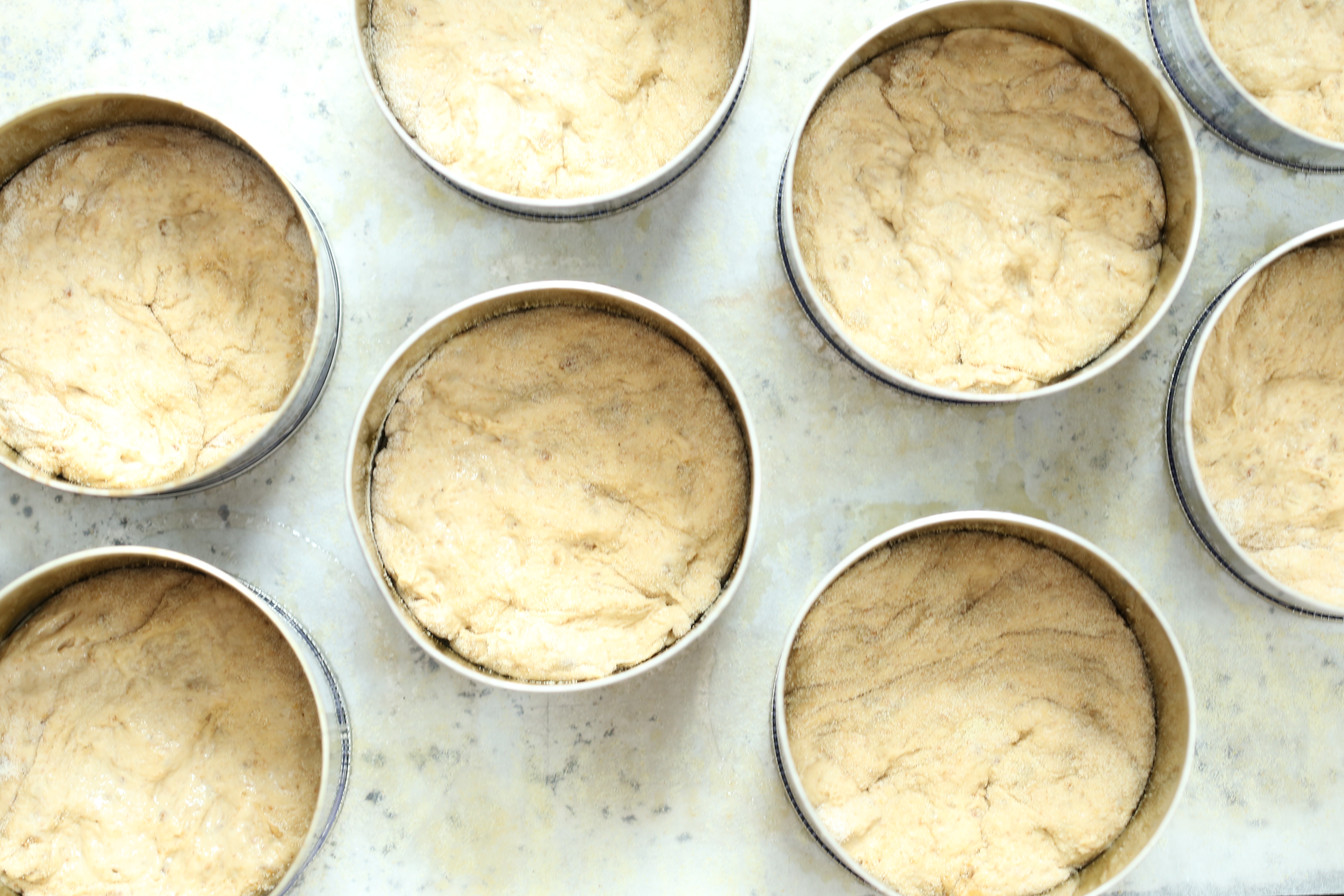 As the dough develops during the bulk fermentation, bubbles form around the sides of the bowl. Rather than dumping it onto a table and forcibly kneading it, the dough is “turned” in the bowl every thirty minutes for three hours.